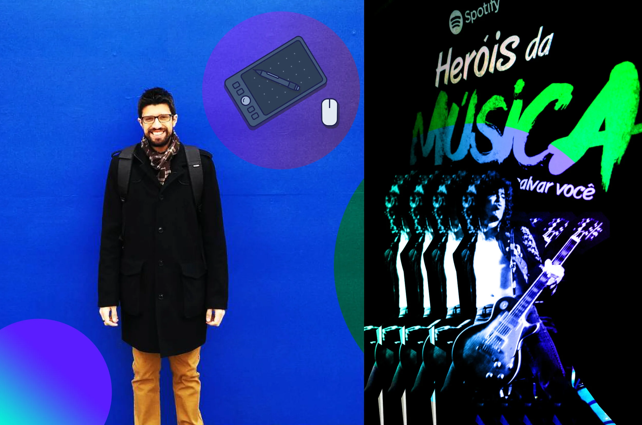Studying Graphic Design was an incredible experience. I made wonderful friends and who I still hangout with, and together we worked on super interesting and creative projects. The one that stands out to me the most is certainly the Spotify one, our final project at college. We had the opportunity to go to Spotify in São Paulo and interview some of the employees (in fact, according to them, we were the only university students to achieve this). We created a whole communication strategy for the brand, going through branding, design and creating a campaign that we called Heroes of Music. This period of approximately 4 years of study at the university certainly helped me a lot to develop skills in graphic design, design thinking and group work. In 2015 I graduated after long years taking buses and crowded trains, arriving home at 11:00pm and spending weekends doing homework. It was during this period that I also met my dear wife. We dated at a distance for 1 year before we got married, so you can add some extra bus and plane trips to the math as well. When we got married she was also attending college, studying childhood education. We managed to transfer her to a unit that was 5 minutes from mine, and for almost the remaining years we were able to return home together every night after classes. Bonus points!